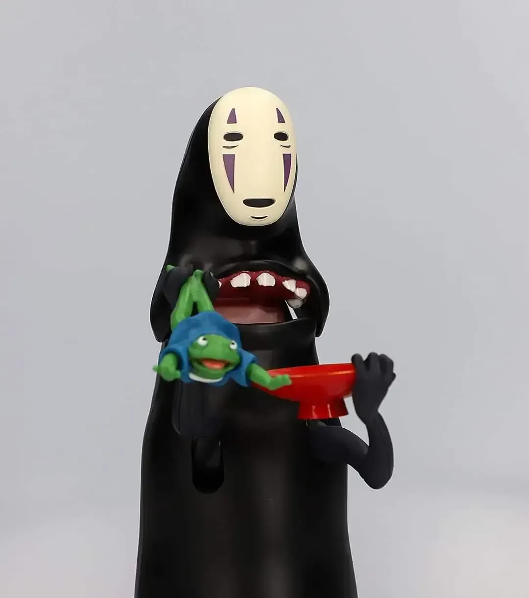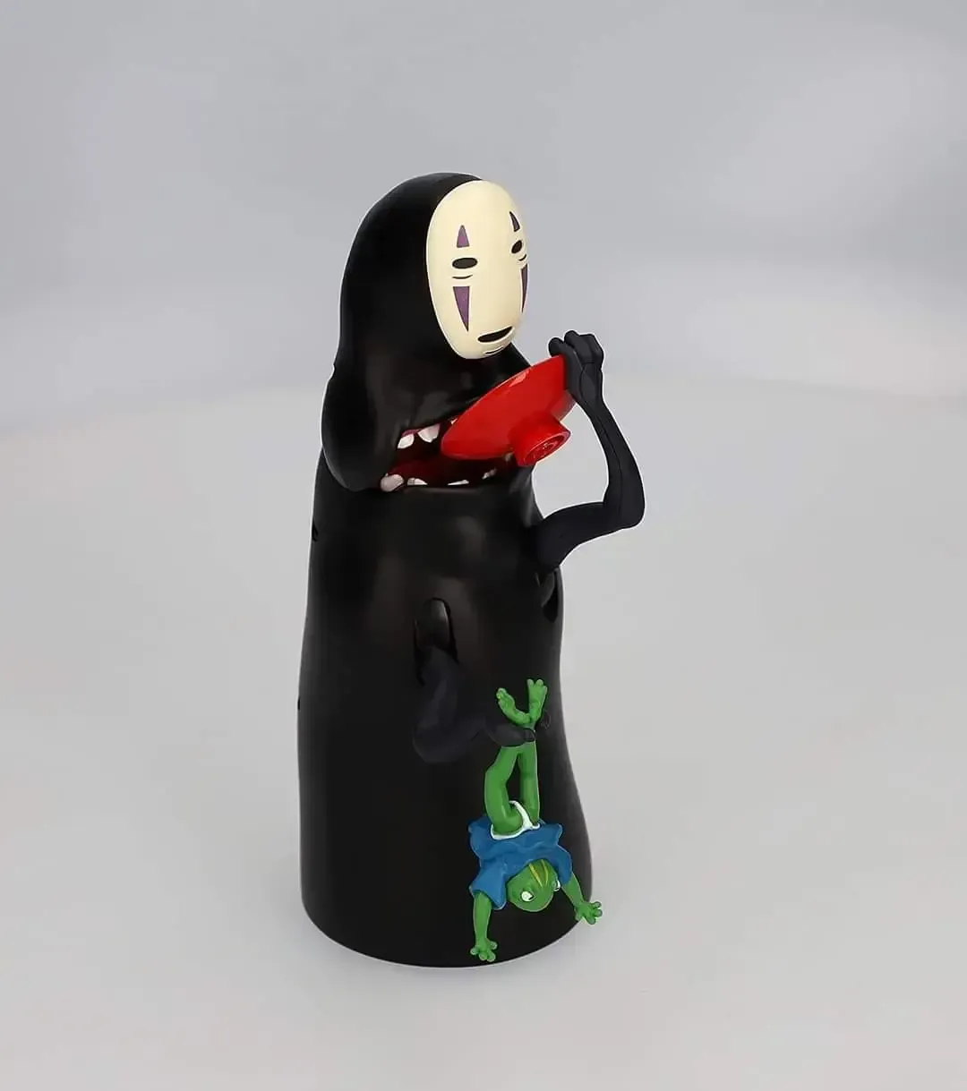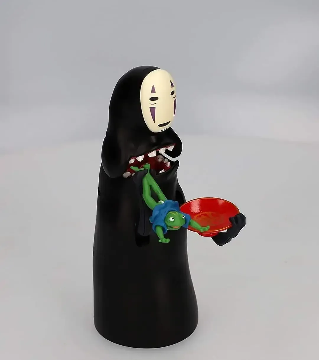 ☆ Artículo: Alcancía electrónica original de Kaonashi (Sin Cara) Vol. 2. Al colocar la moneda sobre el plato, Kaonashi abrirá su boca y se tragará la moneda. La alcancía reproduce movimientos y sonidos y el tema de la película.