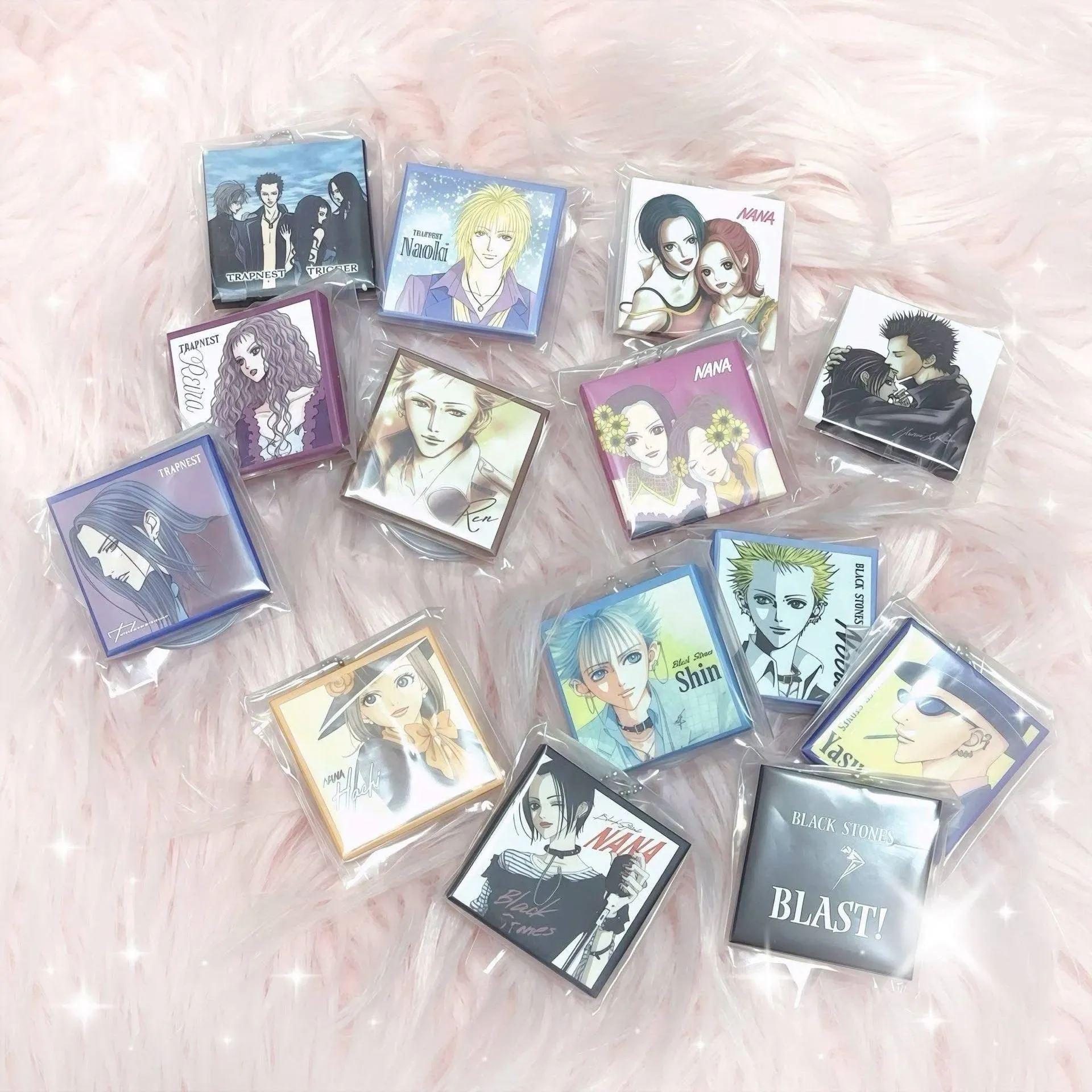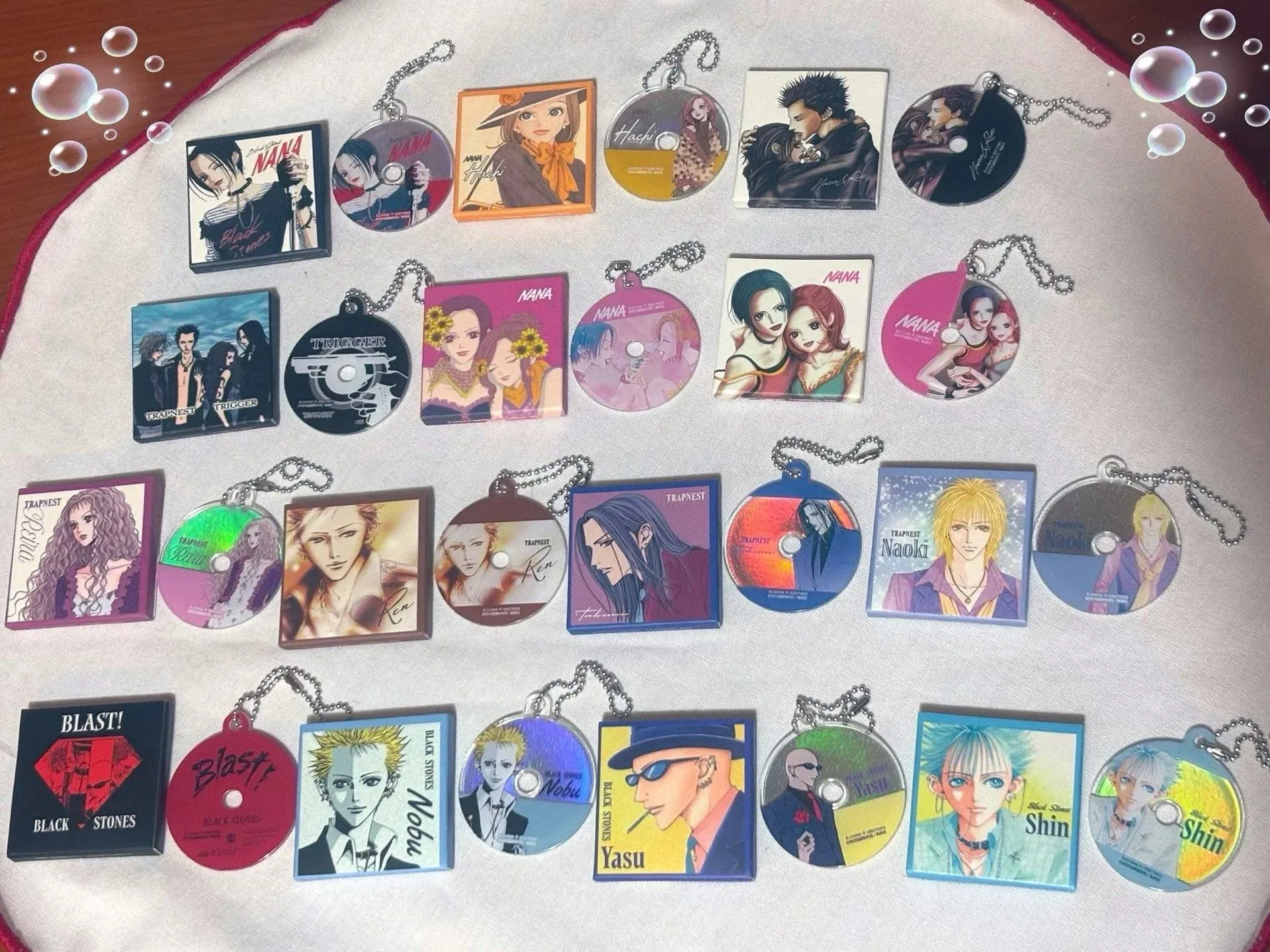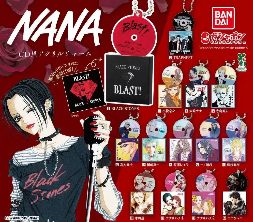 ☆ Artículo: Set de 14 mini charms de Gachapon (Toy Capsule), originales de NANA: CD Style Acrylic Charm Collection. Los mini CD's son de acrílico y cada uno trae su cajita de papel. Cápsulas no incluídas.