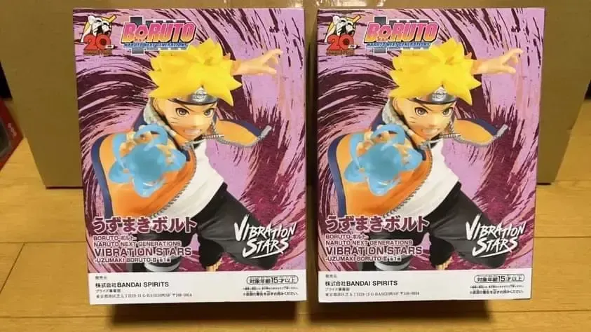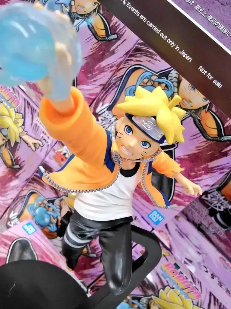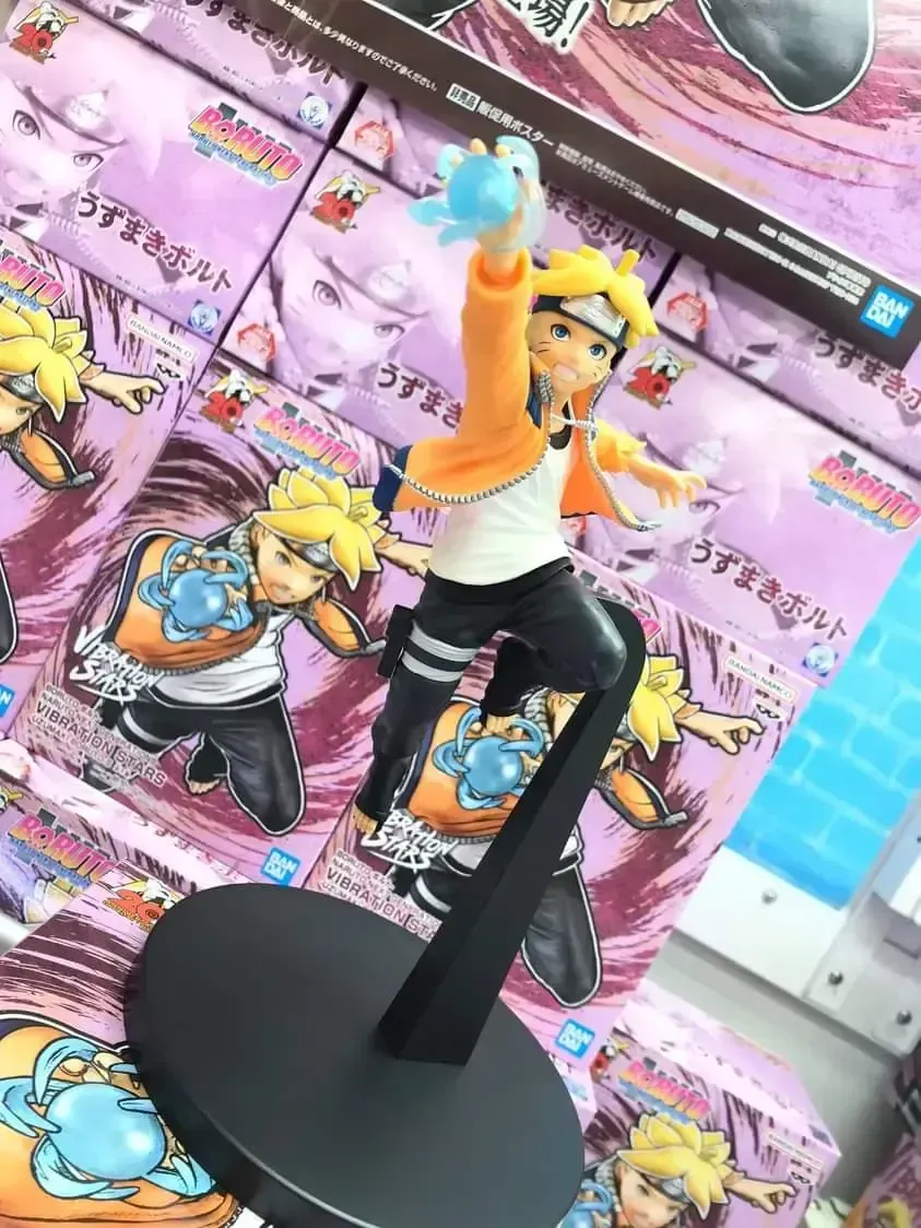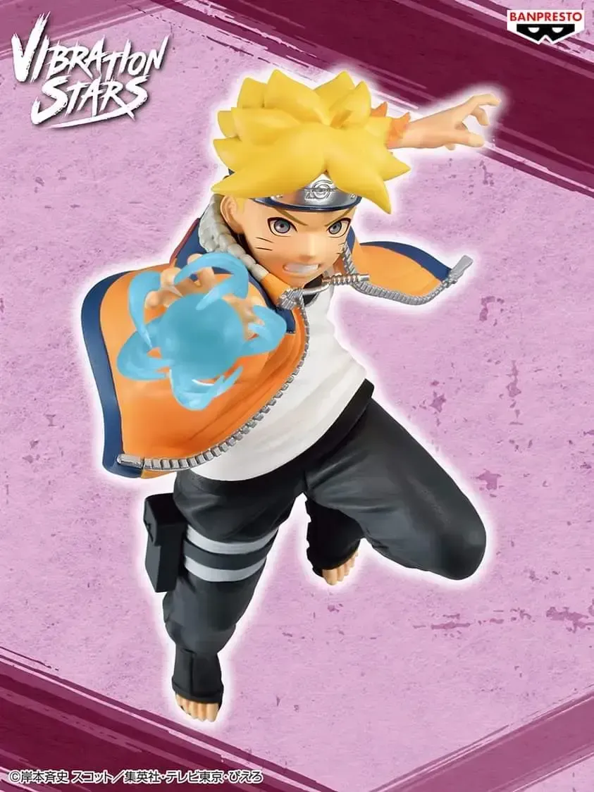 ☆ Artículo: Figura original de Boruto Uzumaki: Vibration Stars II, de Banpresto. Muestra a Boruto vistiendo la chaqueta de Naruto y la banda de Sasuke.