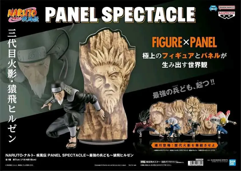 ☆ Artículo: Figura original de Hiruzen Sarutobi, de la línea Panel Spectacle, de Banpresto. Incluye un panel de fondo.