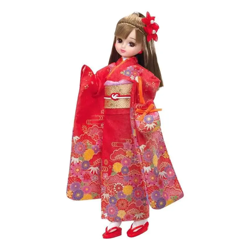 ☆ Artículo: Muñeca original Licca-chan: Kimono Ver. (LD-30). El Kimono, el moño y el bolso son de tela.
