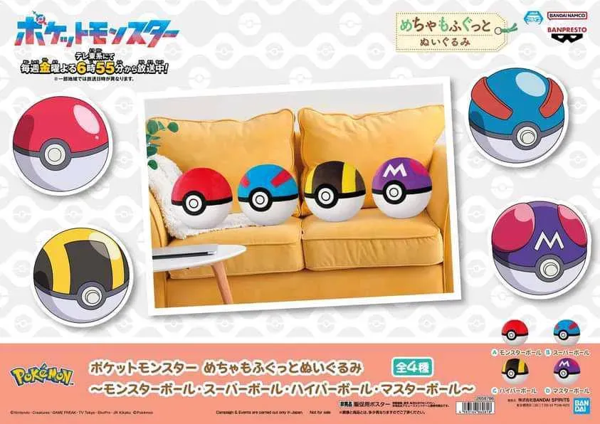 ☆ Artículo: Peluches originales de PokéBalls, de la línea Mega Mofugutto, de Banpresto. Disponibles: Poké Ball, Great Ball, Ultra Ball y Master Ball