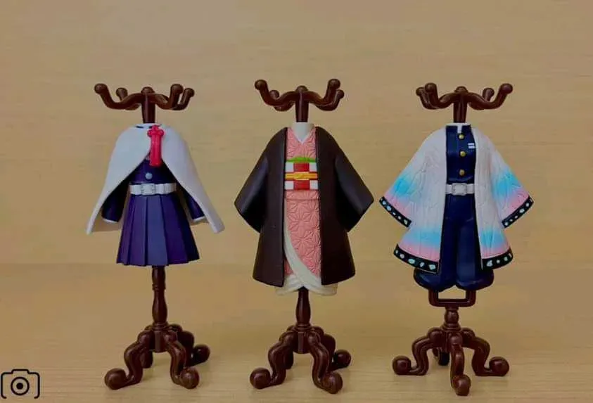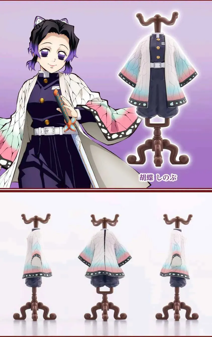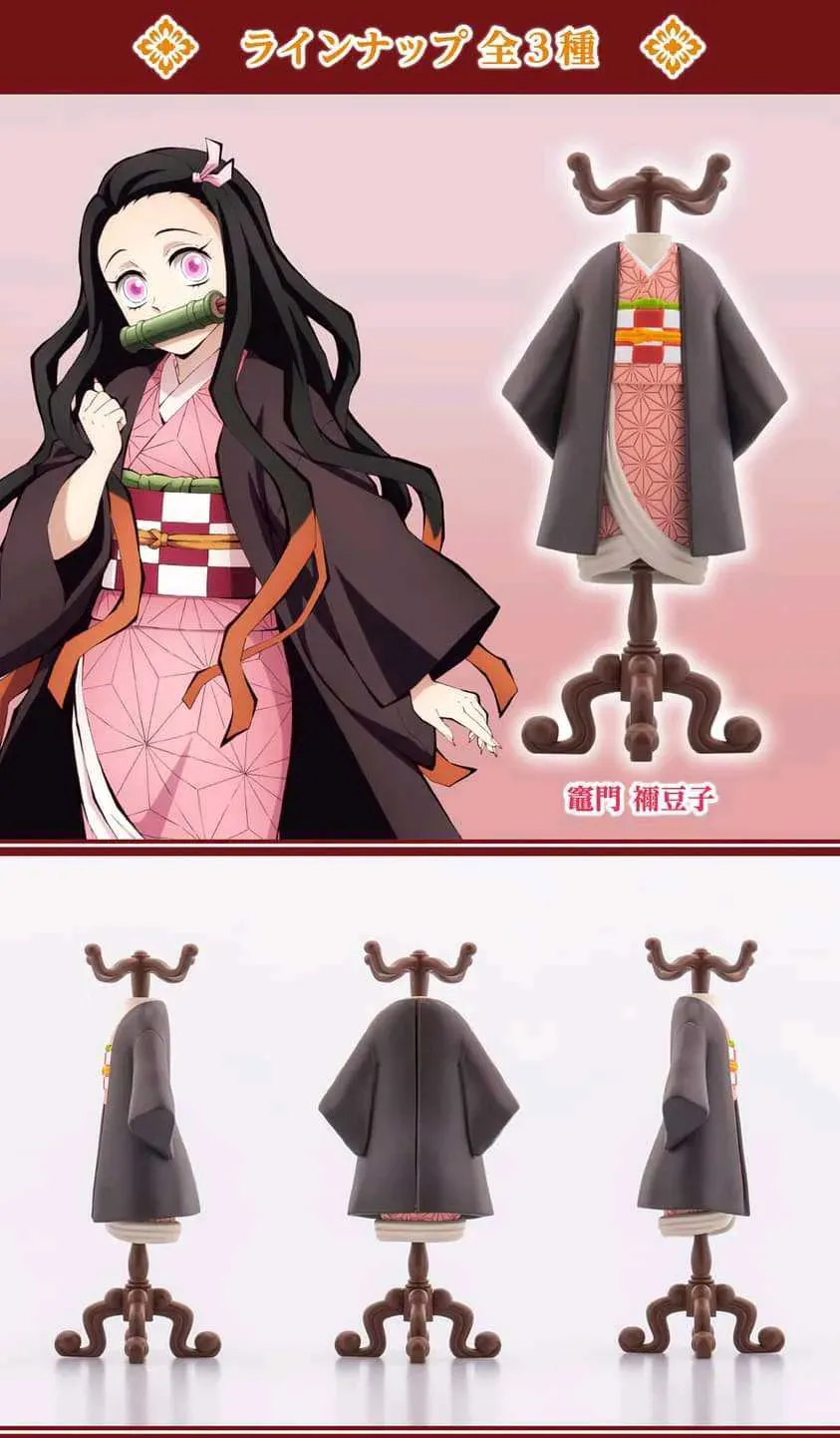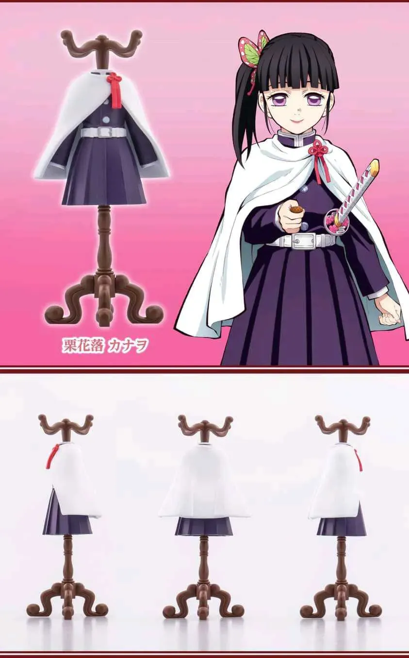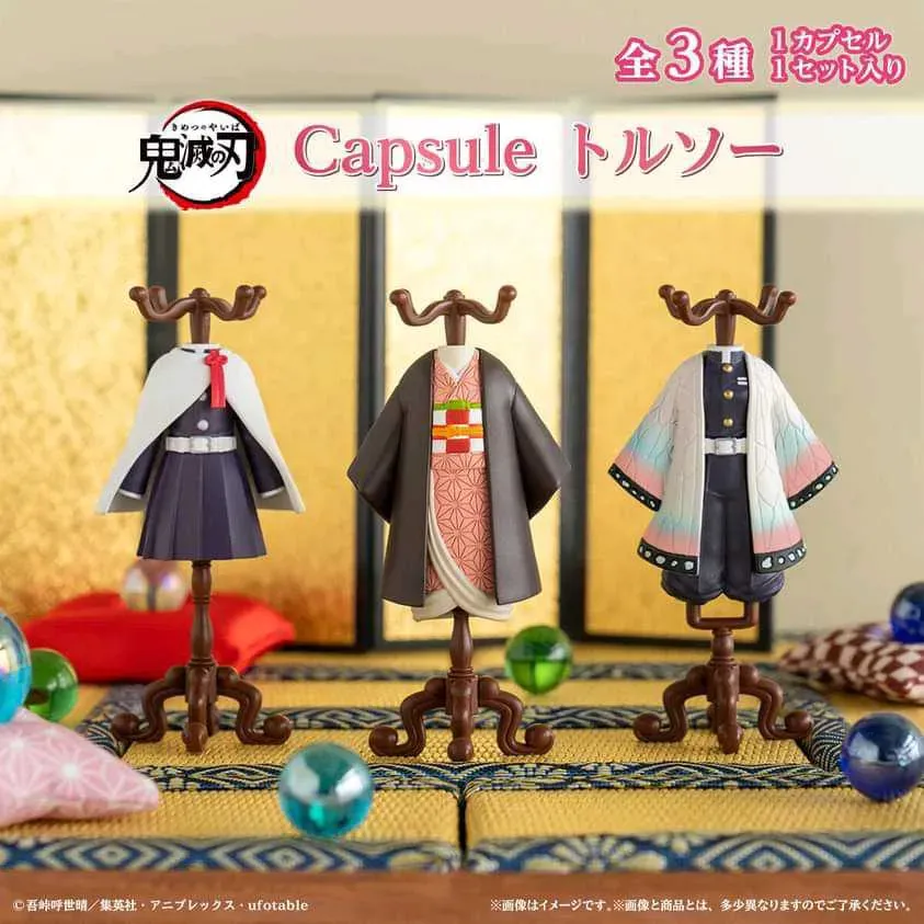 Set de 3 figuras de Gachapon (Toy Capsule), de los trajes de Nezuko Kamado, Shinobu Kocho y Kanao Tsuyuri, de la línea Capsule Torso. Relanzamiento.