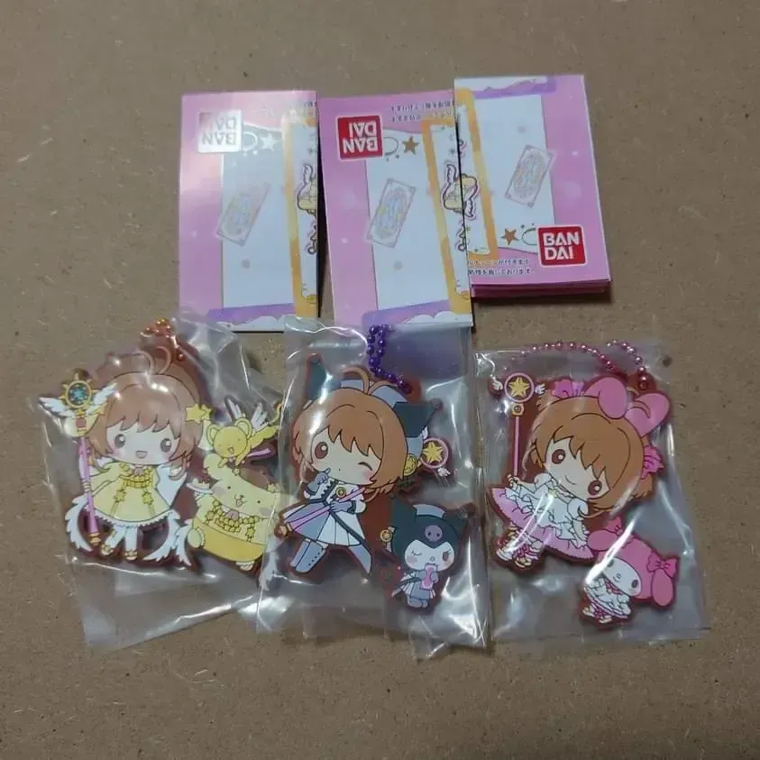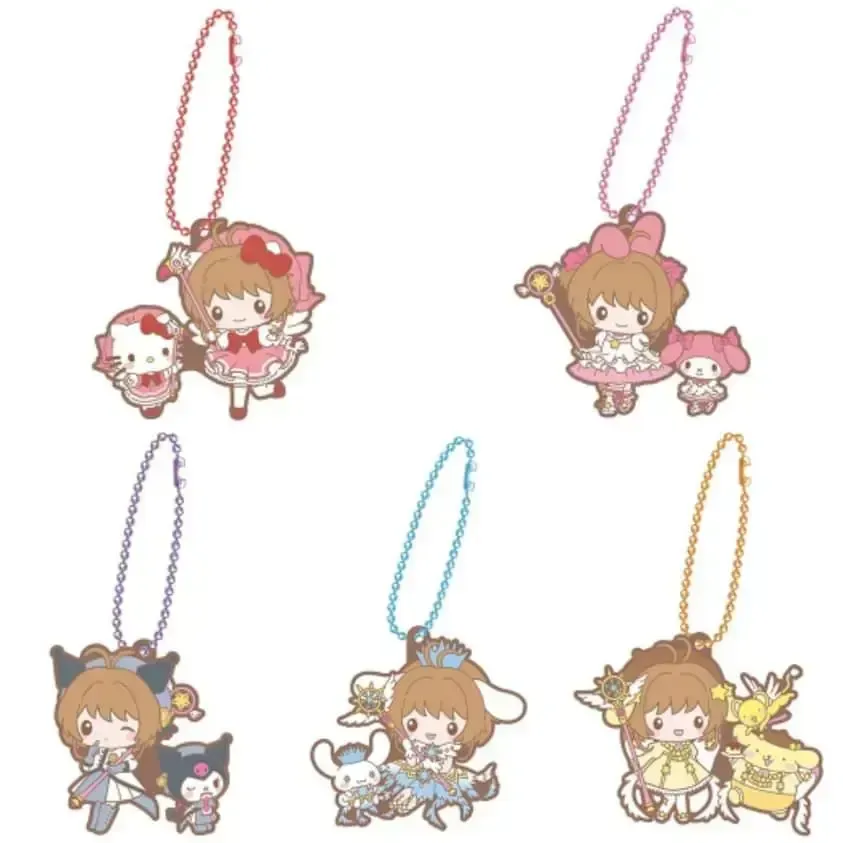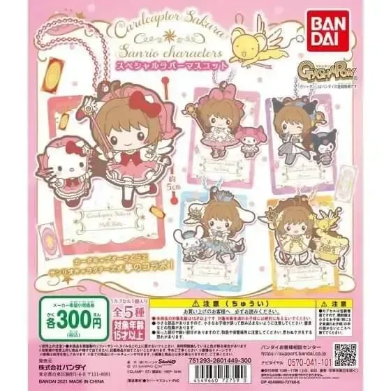 ☆ ArtÃculo: Set de 5 llaveros originales de edición limitada de Sakura Cardcaptor en colaboración con Sanrio Characters, colección Rubber Mascot de la marca BANDAI, serie Gachapon (Toy Capsule).