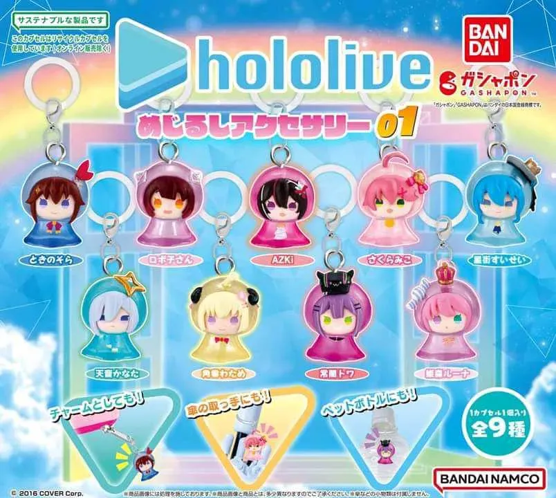 Set de 9 mini charms (colgantes) de Gachapon (Toy Capsule), de Hololive: Mejirushi Collection Vol. 1