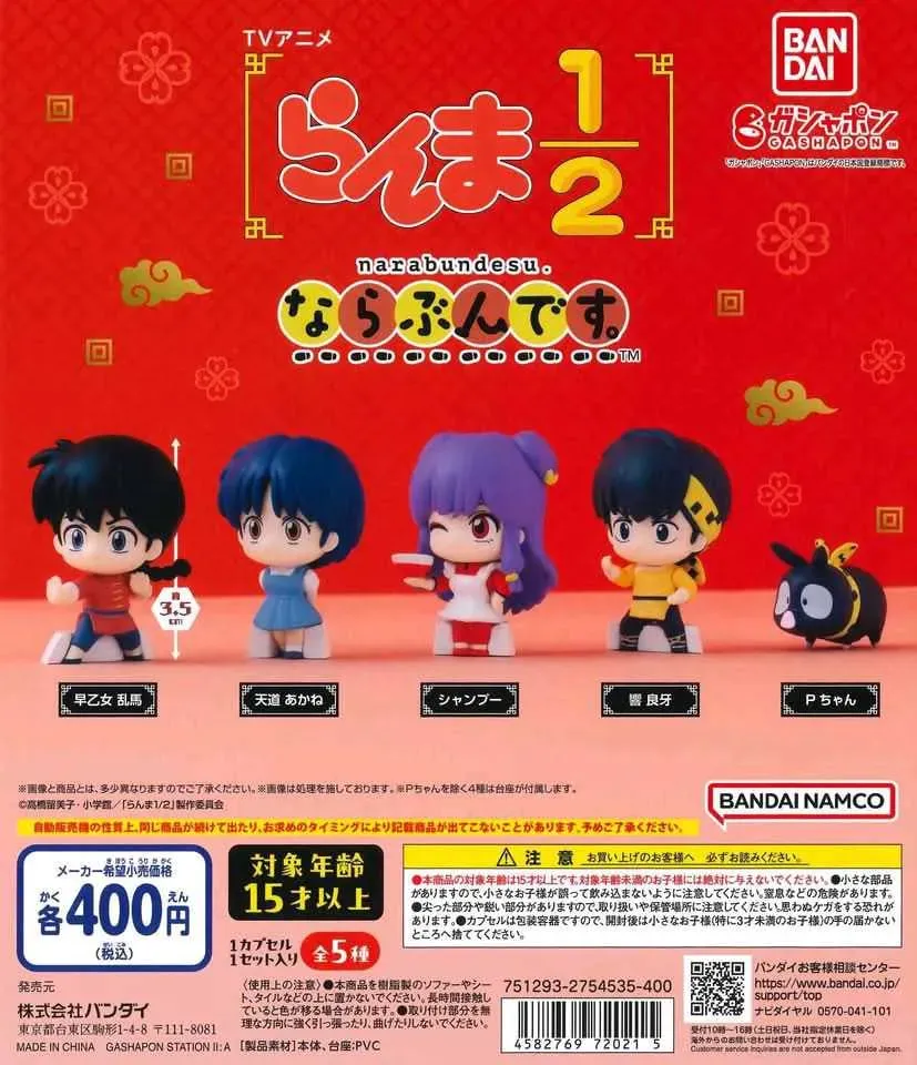 ☆ Artículo: Set de 5 mini figuras de Gachapon (Toy Capsule), originales de Ranma 1/2, de la línea NARABUNDESU
