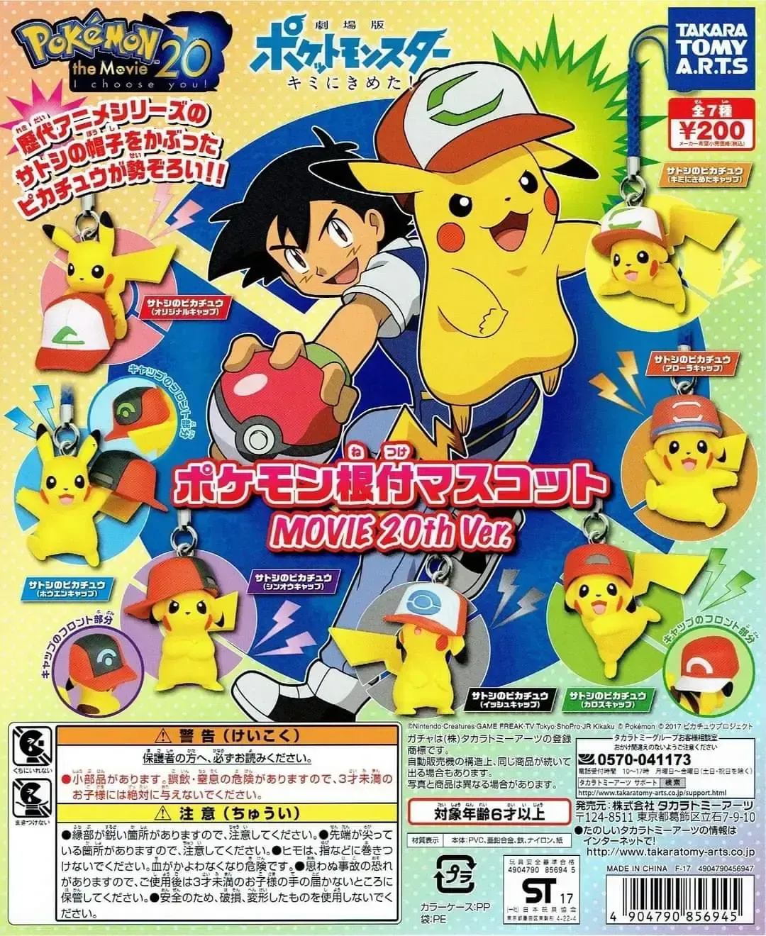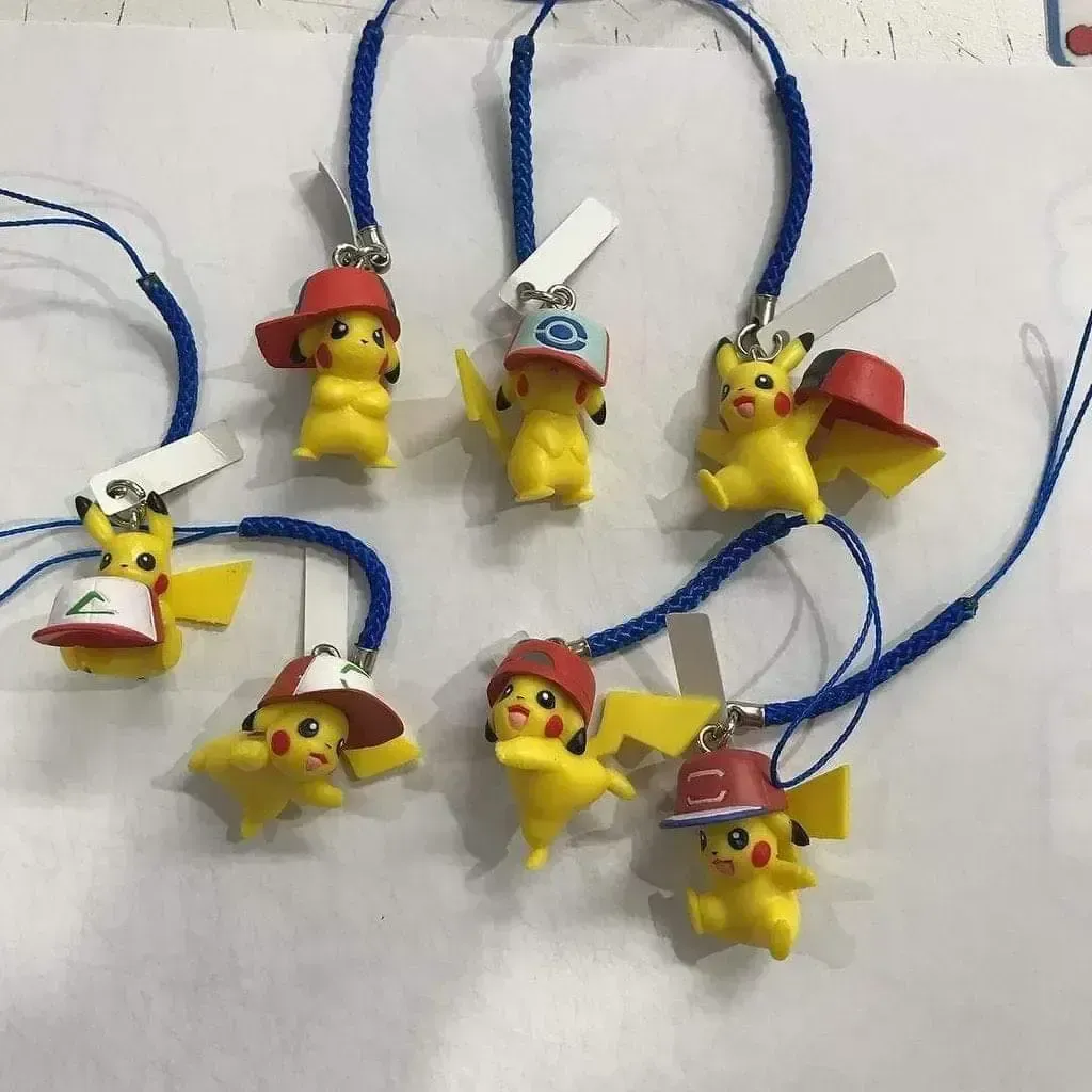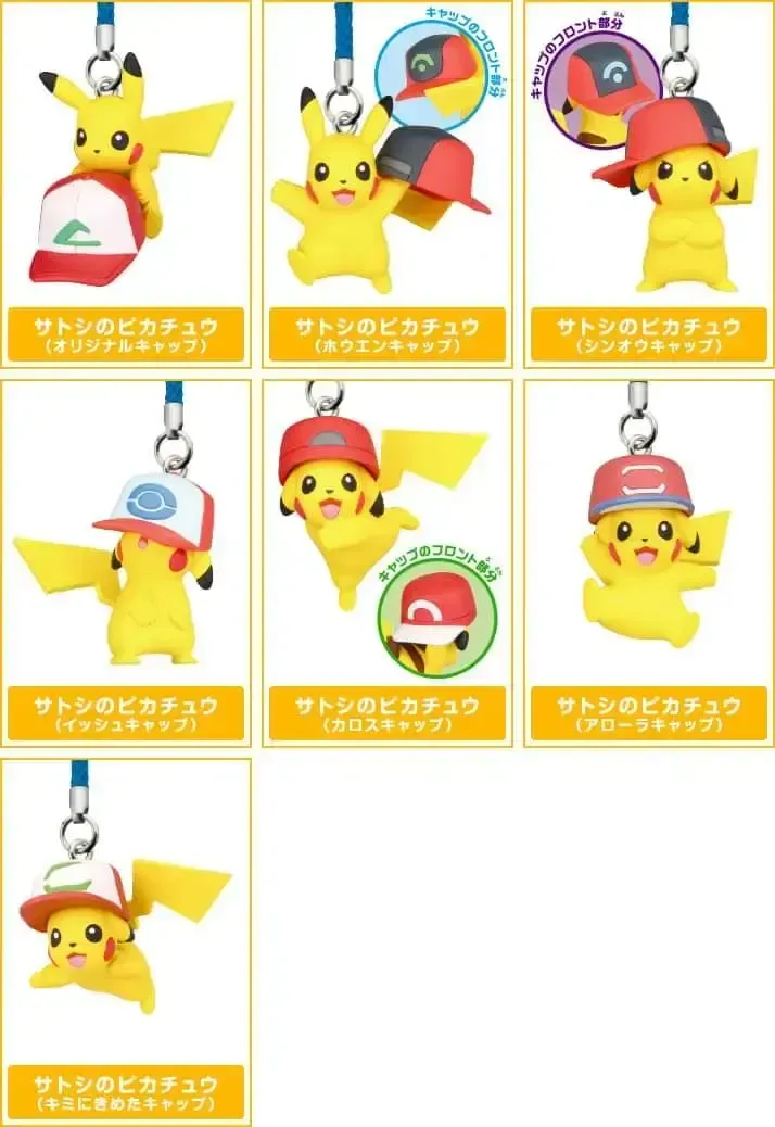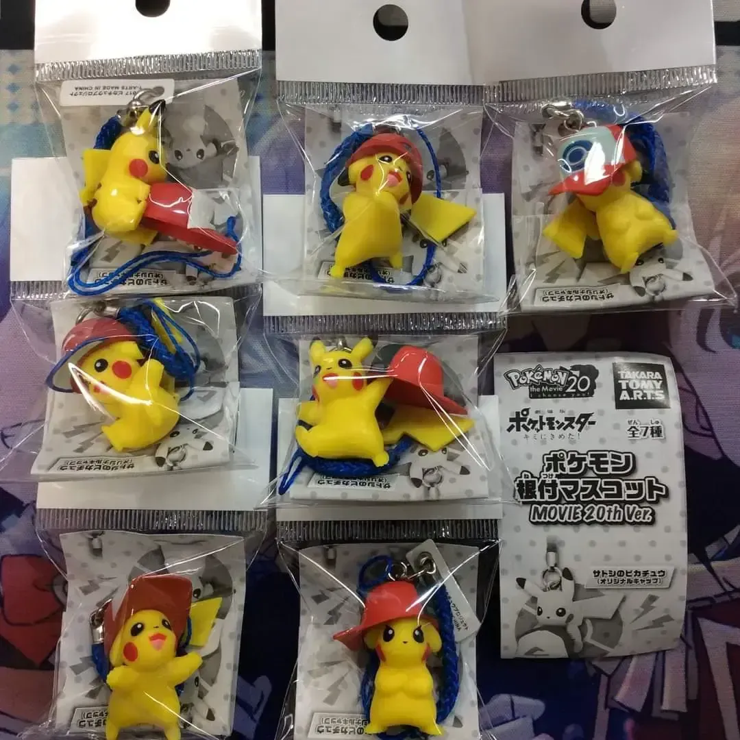 ☆ Artículo: Set de 7 mini figuras originales de Pikachu, cada uno con una gorra diferente de Ash. Colección conmemorativa de la película Pokémon The Movie: I Choose you!, celebrando los 20 años de la franquicia. Serie Gachapon (Toy Capsule).