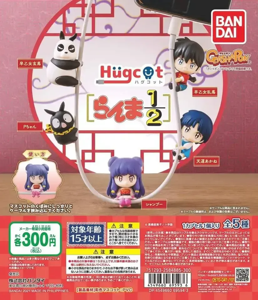 ☆ Artículo: Set de 5 mini figuras originales de Ranma 1/2, marca Bandai, serie Gachapon (Toy Capsule) Hugcot. Protegen los cables, cargadores y audífonos de desgaste y quiebre.